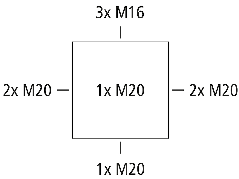 Abox 025-L,产品编号:80240001 | 尺寸:87x87x52mm 接线盒,IP66防护等级,标准截面2.5mm²,VDE认证(DIN EN 60670-1/-22(VDED0606-1/-22)),DLG(耐氨性测试),带弹性自密封孔,M16/M20,密封范围4-16mm,(背部1个,侧面8个),标准室内和室外固定安装,灰色,Ui=1000 V AC