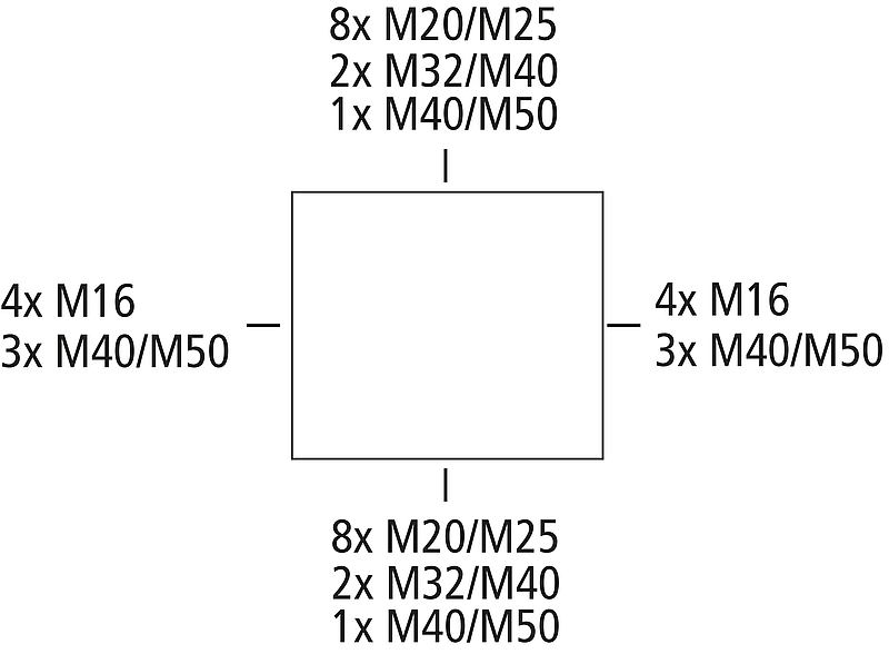 接线盒,防护等级 IP54 / IP65 ,公称截面70毫米,U本人=690伏交流电,敲击, M20/M32/M40/M50/M63,(16侧),内部固定点,标准室内安装 灰色,无终端 提供的配件: 3个带锁紧螺丝的扭转接头IP 54 M63密封范围24 - 43毫米